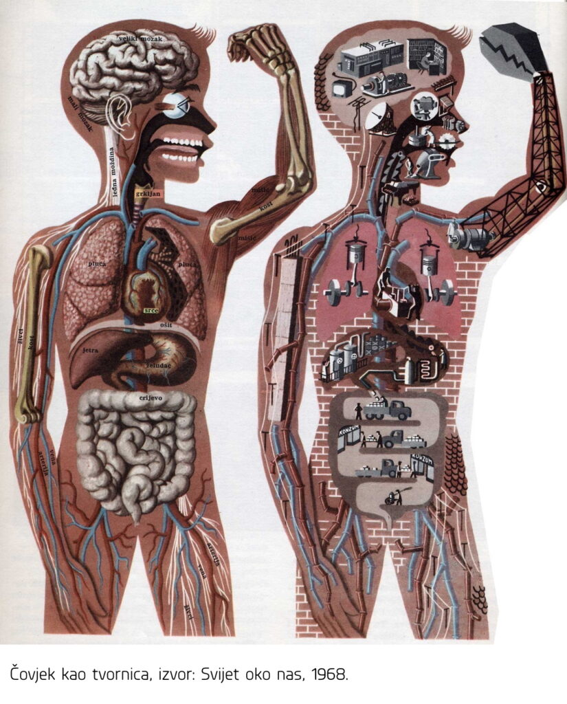 „Marx će pojam rada uzdići, do imanentnog metafizičkog bitka svijeta koji sam sebe stvara. U toj samoreprodukciji rada kao bitka, čovjek je lišen svoje biti – čovječnosti. On je samo moment čistog bitka koji u svom samoostvarenju ne proizvodi bića, jer je on sam svoj predmet i krajnja svrha stvaranja. Sve ostalo što egzistira su samo nedovršeni, u sebi nesmireni predmeti njegove samodjelatnosti bez esencijalnih svojstava. (…) Sam čovjek je poluproizvod – nedovršena stvar – koju treba neprestano poboljšavati u skladu sa zahtjevima produkcije kapitala.“ 1 To što je čovjek „sam svoj predmet i krajnja svrha stvaranja“ ne treba biti shvaćeno kao pesimistično oplakivanje neke izgubljene suštine, već se kritički moment sastoji u tome da je ova ontološka postavka ljudskog bića u kapitalizmu kooptirana u svrhe njegove vlastite reprodukcije, gdje transformacija čovjeka nije svjestan i slobodan čin već prinudna forma transhumanističkog nadilaženja gdje znanstveni rad utire put klizanja prema neljudskom.