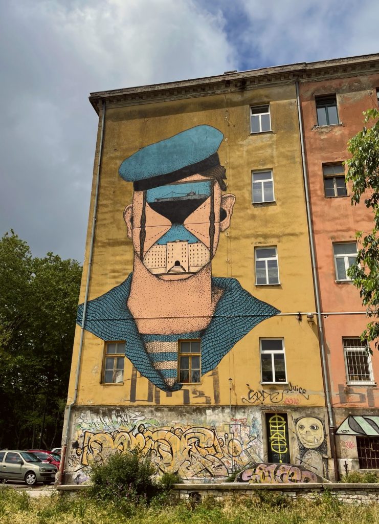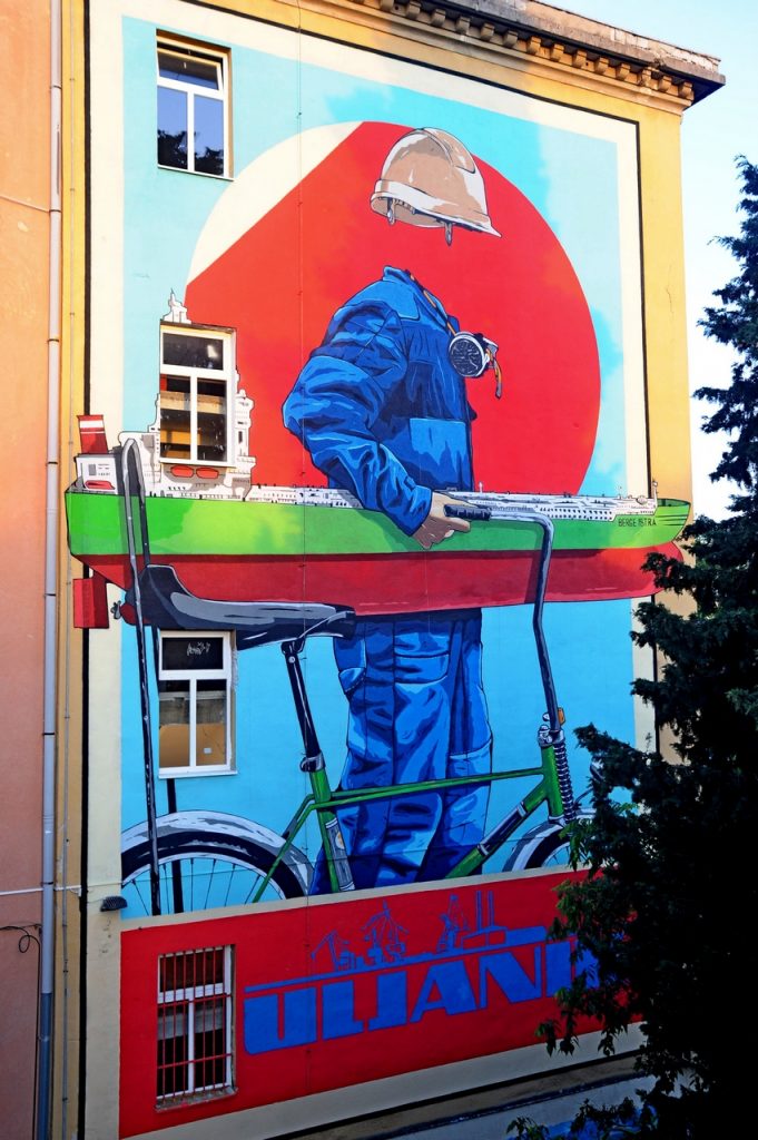 Boris Bare na zapadnoj strani centra oslikao je mural koji tematizira propast brodogradnje u Puli i istovremeno odaje počast Uljaniku koji je othranio brojne pulske obitelji.